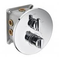 Чтобы предотвратить подобные явления, в смесители монтируется термостат. Эти функциональные запорные устройства работают так: вы выбираете нужную температуру воды на шкале крана, а термостат ее контролирует и корректирует с учетом текущей ситуации.