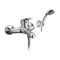 Рассматриваемые смесители совмещают в себе кран для ванны и душ. Эти изделия имеют регуляторы напора, переключатель «ванна — душ», гусак, шланг с лейкой и держатель для нее. Данные бытовые запорные устройства по конструкции органов управления можно поделить на такие виды: