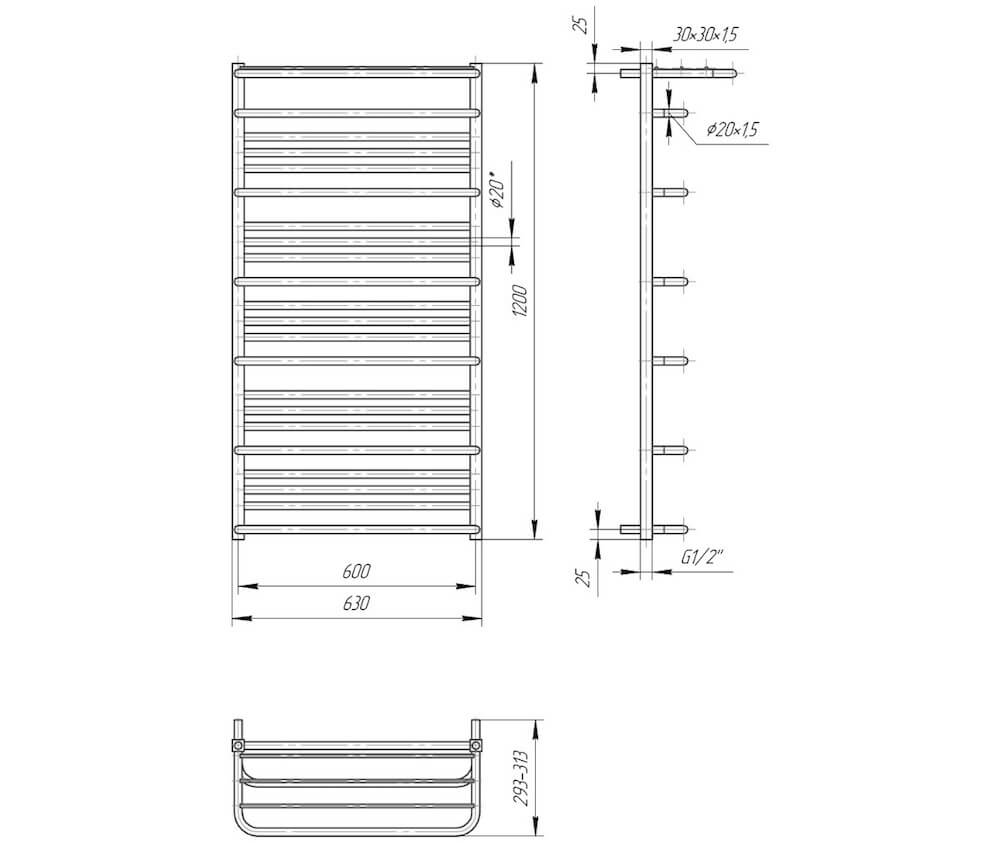 Полотенцесушитель  Премиум Люксор 1200х600х630 1