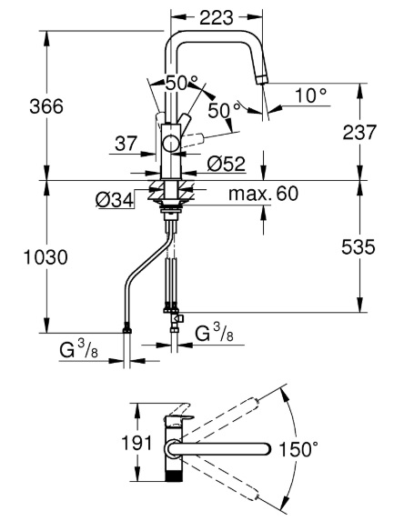 • Grohe Blue однорычажный смеситель для мойки с функцией очистки водопроводной воды - монтаж на одно отверстие