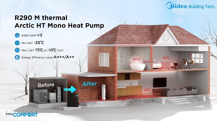 Благодаря превосходным термодинамическим свойствам R290 и передовой технологии тепловых насосов, используя лишь небольшое количество R290, тепловые насосы Romstal EcoHeat 500 демонстрируют превосходную производительность в холодных условиях.
