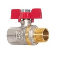 Корпус латунный, никелированный. Ручка типа "бабочка" из алюминия. Резьба присоединения – наружная/внутренняя.