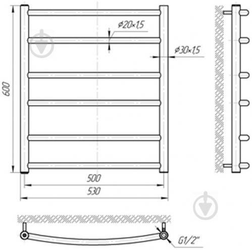 Ця модель має висоту 60 см, ширина - 53 см, міжцентрова відстань - 50 см, а діаметр підключення G 1/2''.