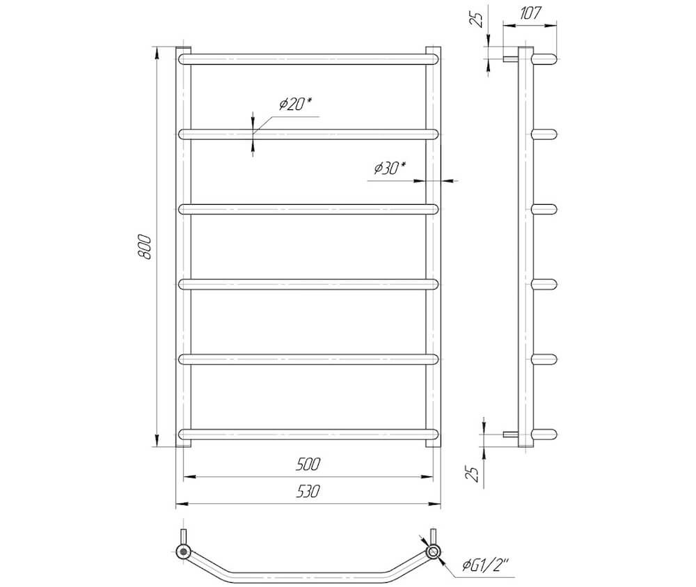 - Конструкція з 6-ти утримувачів для речей. Зручно розташовані за типом трапеції, паралельні ребра обігрівача формують потрібну площу для сушки білизни і рушників, і також не займають багато місця в просторі приміщення.