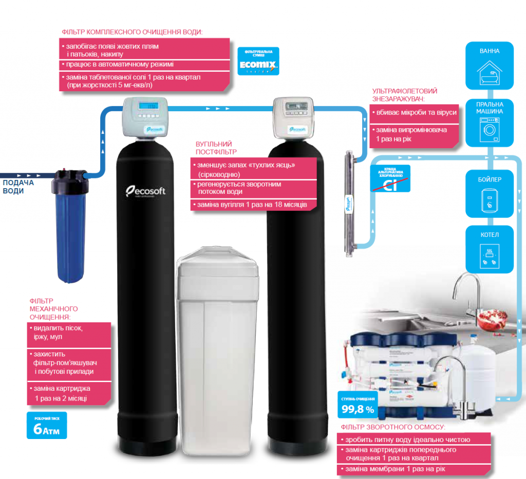 - В результаті очищення вода стане прозорою, а сторонній присмак та неприємний запах зникнуть.