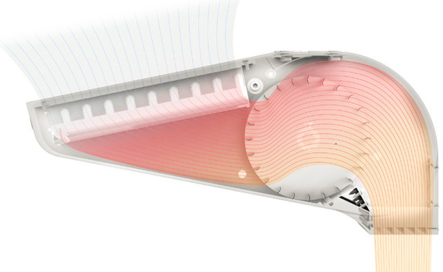 Унікальна форма моделі, грилеподібний повітрозабірник, а також сопло для подачі повітря, дозволяють у кілька разів збільшити рівень повітряного потоку.